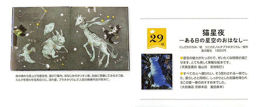 投稿日: 2026.01.012026.01.01 【掲載】月刊MOE 2026年2月号 月刊MOE 2026年2月号 掲載記事 月刊MOE2026年2月号の、全国の絵本屋さん3000人に聞いた絵本ランキング「第18回MOE絵本屋さん大賞2025」のコーナーにて、「猫星夜-ある日の星空のおはなし-」を29位に選んでいただきました。本の紹介・コメントも掲載。ぜひとも、ご高覧ください。 MOE Website